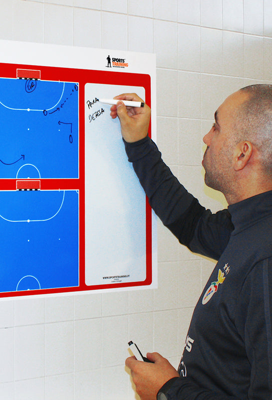 This magnetic & writing model size M (105x75cm) is ideal for lectures in the field, locker room and in the auditorium.
